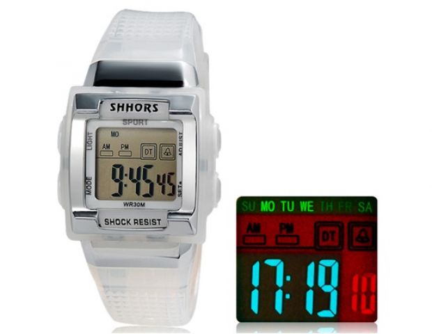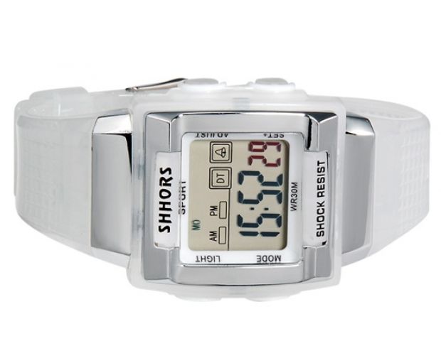 Speciálně konstruované digitální hodinky.