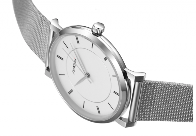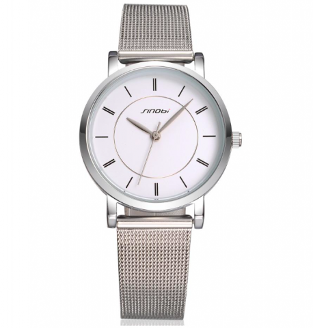Bílý číselník se stříbrným náramkem